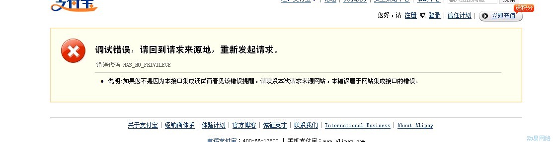问题:支付宝支付,提示“HAS_NO_PRIVILEGE”