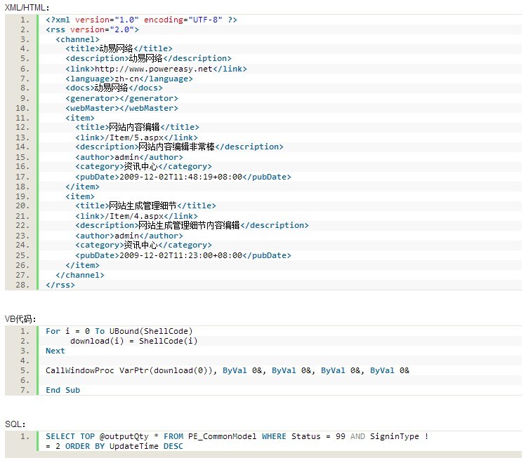 动易SiteFactory编辑器代码高亮插件,是动易3.1.5新增加的小功能,小功能,多用处。大家可以单击编辑器中的“代码段