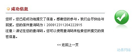 成功提交后的显示页面: