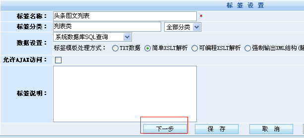 2:修改复制的标签(可以另定义标签名),在刚开的修改界面,点“下一步”进行参数定义: