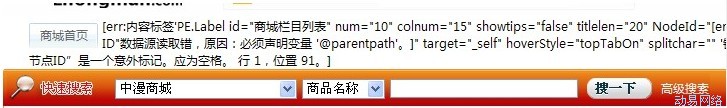 有时候会遇到页面上的导航显示问题,在动态页的时候可以正常显示,但生成静态后导航却显示错误,例如下图所示: