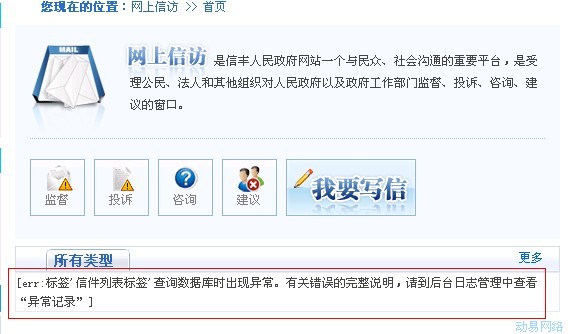 某些用户从SF政府版3.1升级到SF政府版3.5后发现信访首页的标签提示“[err:标签'信件列表标签'查询数据库时出现异常。有关错误的完整说明,请到后台日志管理中查看“异常记录”] ”