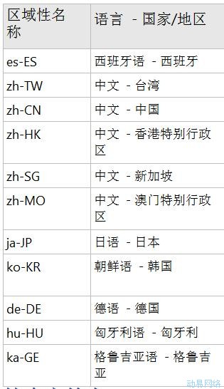 首先我们需要先了解常用语言区域性名称规则,如:中文(中国) [zh-CN]、英文(美国) [en-US]、 西班牙语(西班牙)[es-ES]。