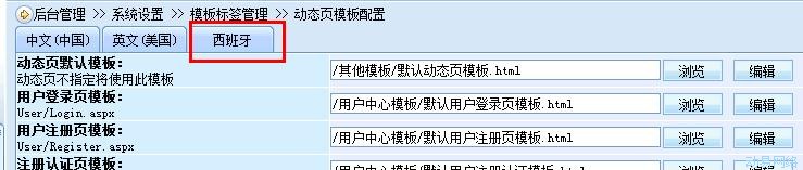 在后台管理 >> 系统设置 >> 模板标签管理 >> 动态页模板配置也可以给系统动态页添加西班牙语模板了。