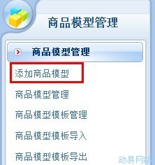 进入 系统设置 >> 模型管理 >> 商品模型管理 ,点击页面左侧的 添加商品模型 链接,进入商品模型添加页面;