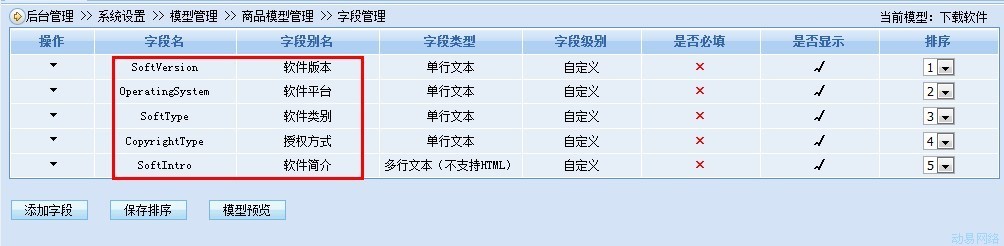 2、添加下载模型的自定义字段: