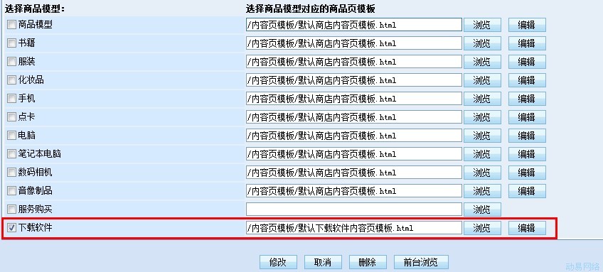 5、栏目上绑定下载商品的内容页模板: