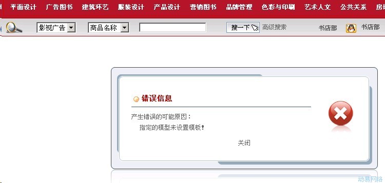 有的用户从ASP版本升级到.NET版本后,会发现在商城节点使用搜索页的时候,搜索结果提示“指定的模型未设置模板”,如下图: