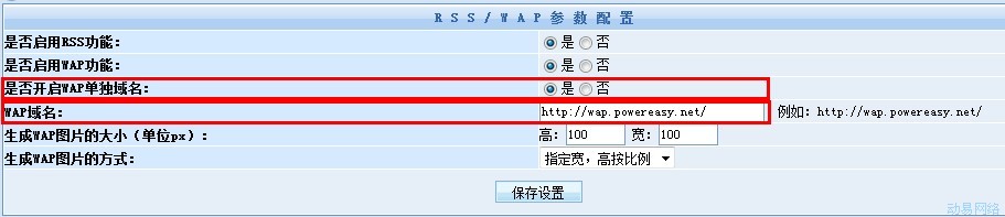 进入 系统设置 >> 网站配置 >> RSS/WAP配置 ,启用wap功能并设置wap域名。