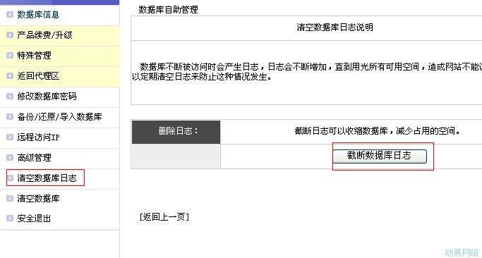 数据库不断被访问时会产生日志,日志会不断增加,直到用光所有可用空间,造成网站不能访问,因此您可以定期清空日志来防止这种情况发生。