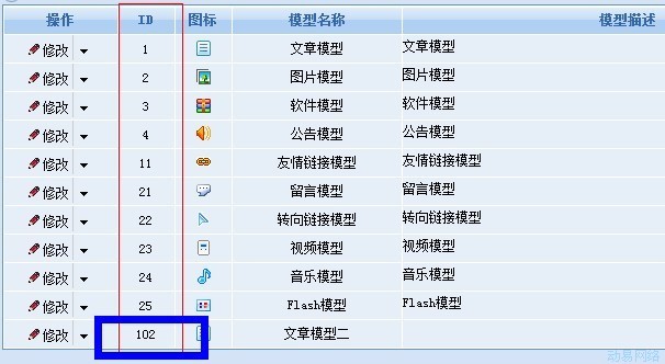 新建的内容模型的ID为102 ,因此在模板中相应标签绑定的内容模型的值应该为102