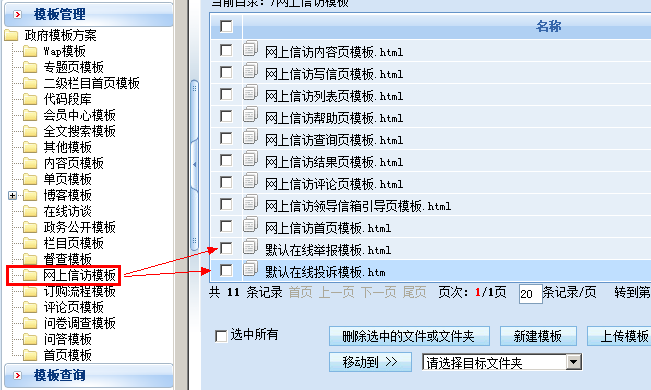 网上信访模板.rar 中的两个模板文件放到“Template政府模板方案网上信访模板”中。