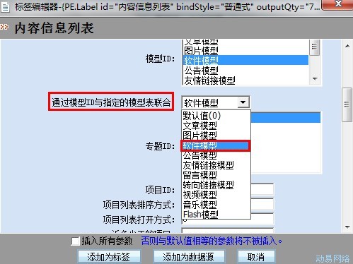 默认的是没用绑定,所以是默认的文章模型导致信息调用不出来,或者在标签调用代码中加上参数bindModel="3",这样下载首页的滑动门就能调用出来了。