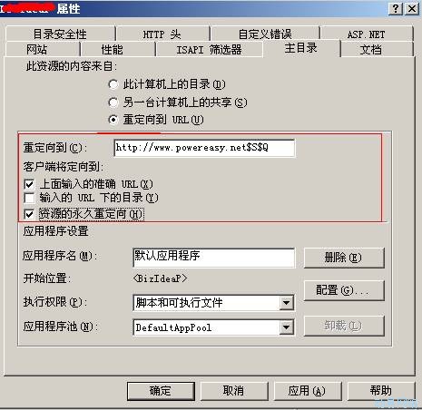 301重定向保证以前的收录页面都能完整的重定向到新网站,下面介绍 IIS 301重定向之全站重定向方法. 如下图所示: