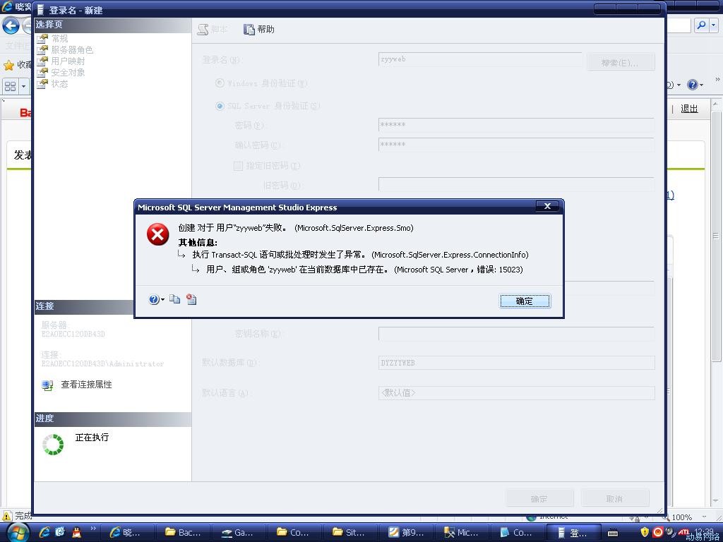 错误15023:当前数据库中已存在用户或角色