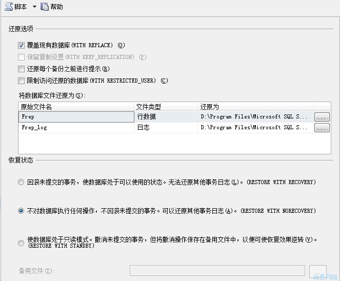 其实要备份,还原最安全最有保障的是完全备份。但是完全备份肯定是需要更多的磁盘空间的开销。尤其是数据量比较大的。比如基数是500M,每天的增长量为10M,那么第一次完全备份是500M,第二次是510M,第三次是520M……成本相应的肯定就增加了很多。如果使用差异备份,那么第一次完备后的差异备份就只是第天所增长的量。能减少很多磁盘的开销。但是还原差异备份比还原完整备份稍微要麻烦一些。 还原差异备份需要一个完整备份,以及最新一个差异备份文件。 操作如下。 选择完整备份文件,在常规操作中选择“覆盖现有数据库(with replce)”与下面的单选项的第二项"[ √ ]不对数据库执行任何操作,不回滚未提交的事务。可以还原其他事务日期(A)。(restore with norecovery"点击确定。会提示还原成功。