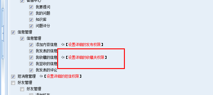 原因是:在设置详细的收藏权限里面设置了0条信息,所以就导致没有这个收藏的权限了