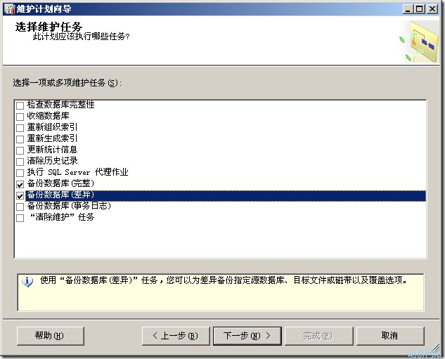 下面我来讲一下如何通过维护计划来实现完整备份+差异备份: