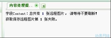 获取远程保存图片失败 来源:本站原创 点击数: 次 发布时间:2011年12月07日 提问:在添加编辑内容时,提示获取远程保存图片失败。 解决方法: 1.检查网站后台配置是否正确。 1.检查服务器的防火墙禁用端口是否有屏蔽。 3.检查完成后,保存成功。