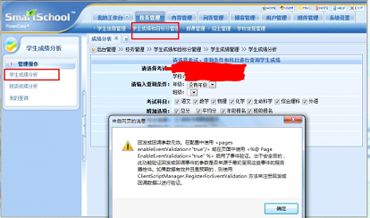 校务系统成绩分析出现“会发或回调参数无效”提示