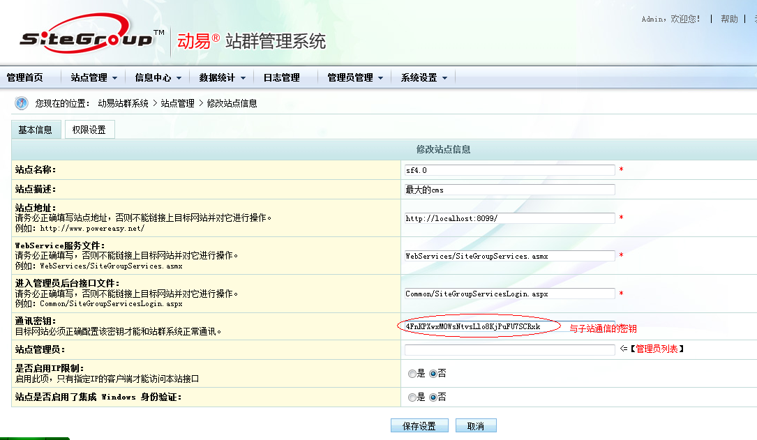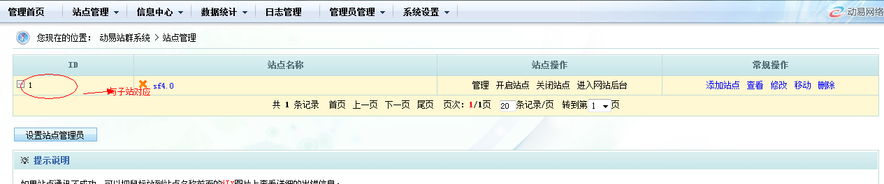 注意:站群ID与子站站群接口ID一致。