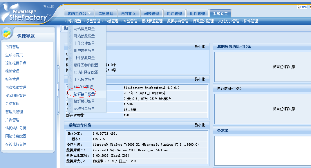 站群接口配置与子站操作具体步骤如下: