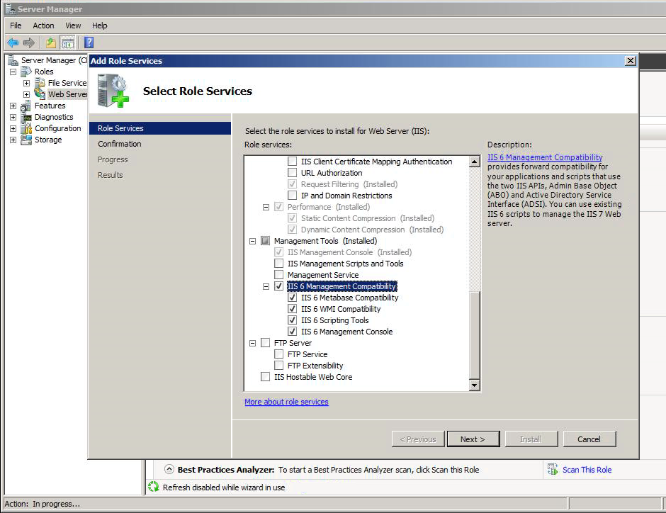 4. 在“管理工具”的“IIS 6 管理功能”中选择所有项。