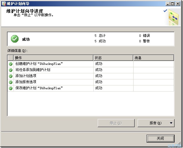 “维护计划”是在SSMS的对象资源管理中“管理”节点下面。使用维护计划可以通过可视化的操作,只点点鼠标就可以创建数据库维护的SSIS包,然后仍然是通过SQL Server作业的方式来运行。维护计划与前面说到的备份方法本质的不同就是:维护计划是SSIS包,上面的是T-SQL脚本。