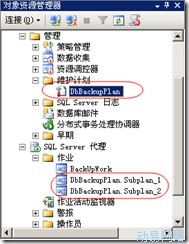(10)完成后,我们再刷新下对象资源管理器,我们可以看到对应的维护计划和该计划对应的作业: