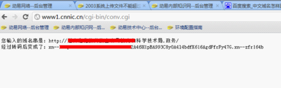 原因分析:IIS服务器默认是不支持绑定中文域名的,所以中文域名绑定必须将域名先转punycode码。