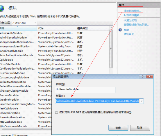 添加 PowerEasy.Foundation.HttpModule.UrlRewriter.UrlRewriteModule,PowerEasy.Foundation.HttpModule