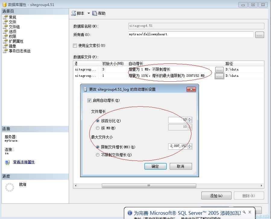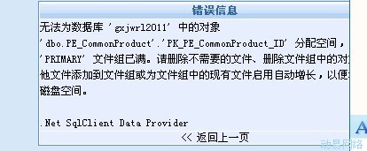 分析原因:按照图片给得提示,就知道数据库文件的增长受到限制了.