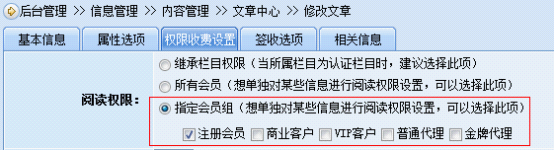 内容信息会员组独立阅读权限设置相关