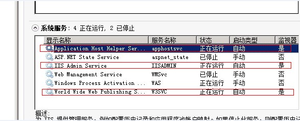 上面的红色框框中的IIS支持的系统服务没有启动或者没有安装
