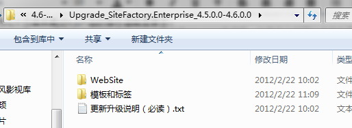 假设您当前系统为:SiteFactory.Enterprise_4.5.0.0,解压您下载好的升级包:Upgrade_SiteFactory.Enterprise_4.5.0.0-4.6.0.0.rar