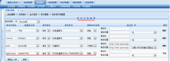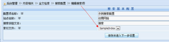 第二步来到搜索项管理,选择好刚刚生成的索引文件,进行配置