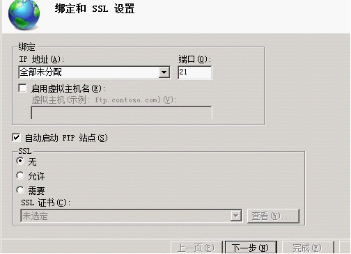 然后,选择 IP 端口的绑定和 SSL 的相关设置