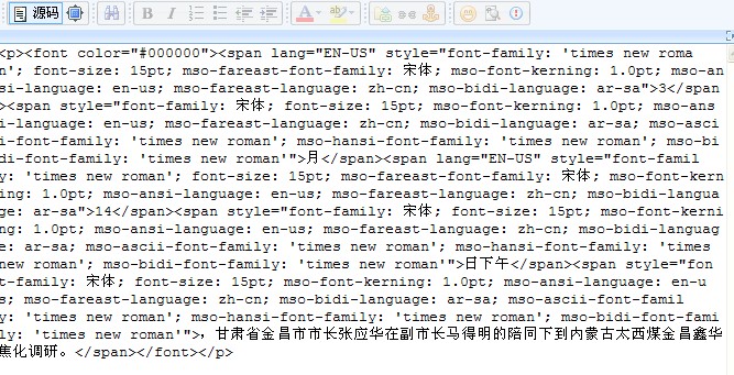 原因分析:刚开始以为是因为模板的HTML结构问题,导致图片被挡住了,但是通过火狐浏览器的firebug插件检查发现图片根本没有被输出,并不是被挡住,然后对比了其他图片,能正常显示,利用对比的方法排查,发现两篇内容中图片简介字段的格式差异比较明显。把有问题的那篇内容的图片简介去掉,再在访问页面,图片显示出来了,由此可以判断问题是出在图片简介中,修改这篇内容,查看图片简介的源码,发现图片简介的内容中带了大量的字体定义代码,如下图: