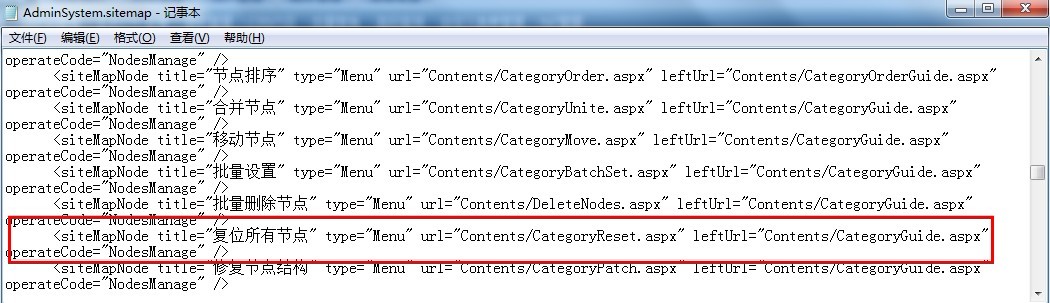 用记事本代开AdminSystem.sitemap文件,查看内容代码,我们可以发现这样一段。