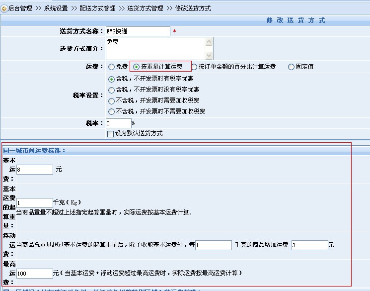 商城运费设置