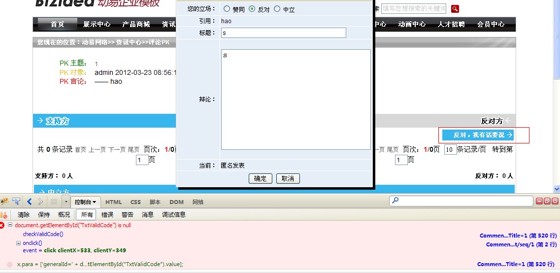 解决方法:把这里选为“是”,然后再到评论PK页重新操作一次,就能发现多了一个验证码的输入框了,输入后点确定就能正常提交。