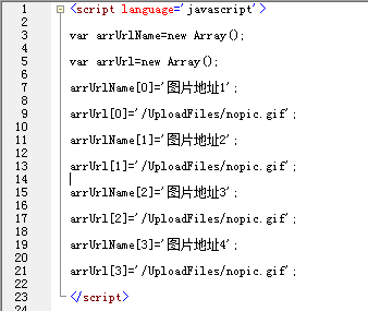 下面我们就利用这个数组来显示本页面中的所有图片,用JS循环数组即可: