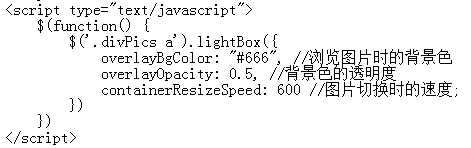 其中有一点要注意的是,要使用该灯箱效果,需要页面上面的图片带有A链接标签,而且A标签地址要指向图片地址。