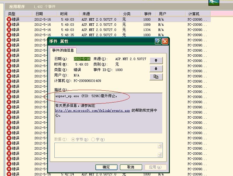 分析原因:开始运行到控制面板->管理工具->事件查看器中查看日志信息,打开以下的日志。