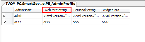 找到该表中,WebPartSetting字段,将字段内容换成其他正常管理员的这个字段。
