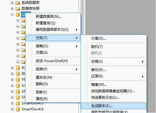 1.首先我们在SQL2008中生成对应数据库的脚本。