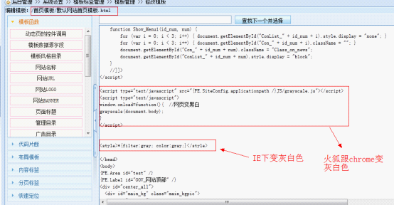 注:src="{PE.SiteConfig.applicationpath /}JS/grayscale.js" 根据实际路径填写。