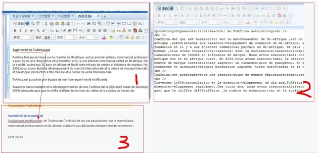 问题分析:后台添加一篇文章,在前台显示的时候,会出现源码或乱码。如图所示: