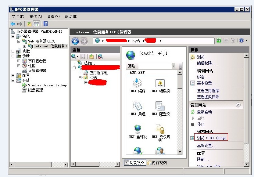 分析原因:经过检查文件夹权限,网站设置没有发现问题后,猜测可能网站IIS、.net等环境安装存在故障。