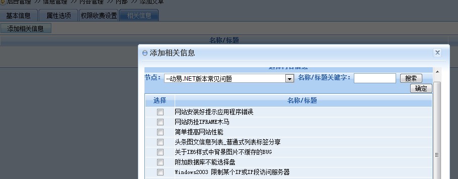 动易系统中,在发布内容的时候,可以在相关信息中添加与本发布内容相关的文章。